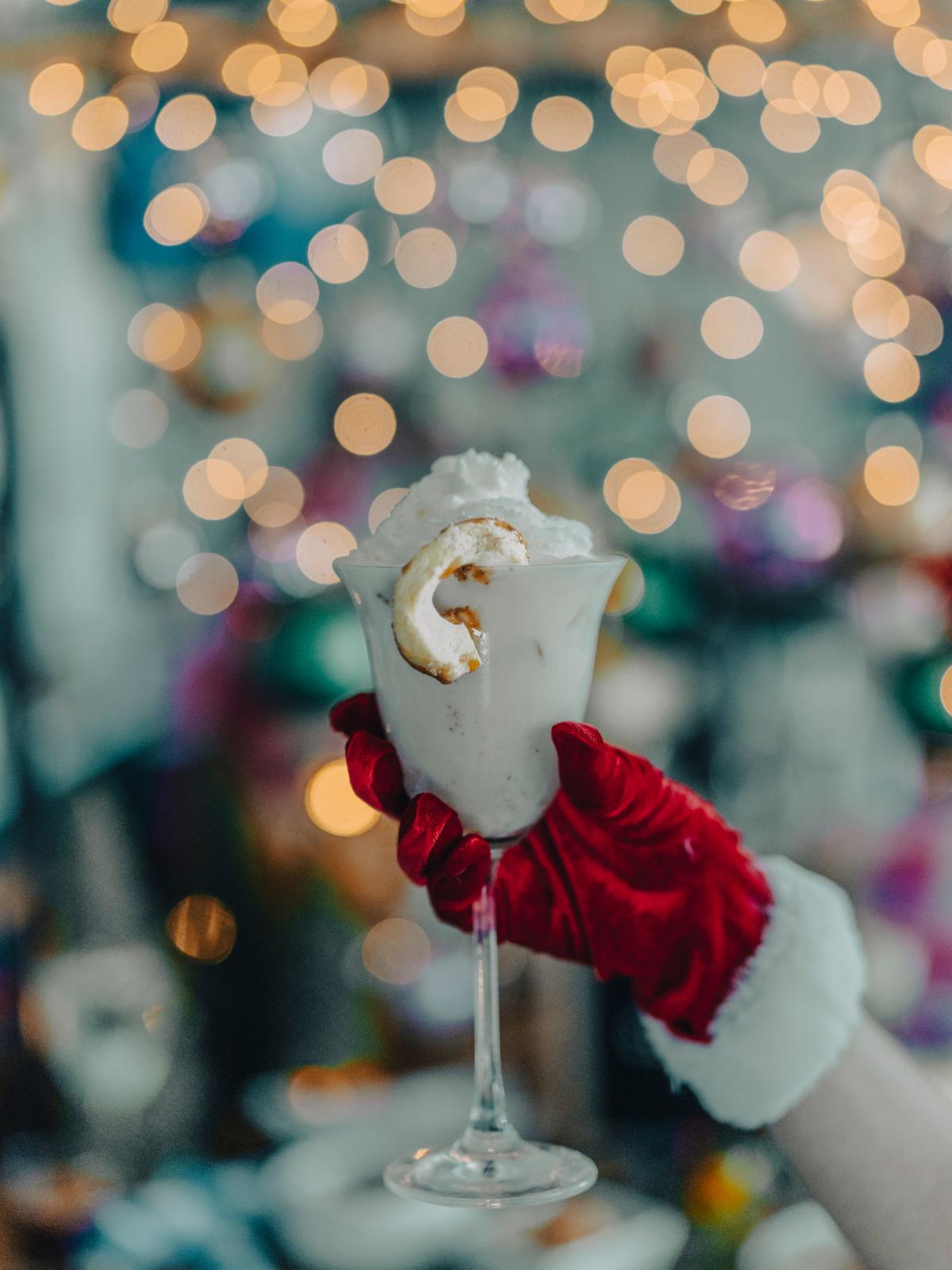 Festively garnished cocktails include The Partridge, Frostbite, Resting Grinch Face, Max on the Rocks, Sugar & Spice and Midnight Noel. (Drink descriptions in graphic below.)