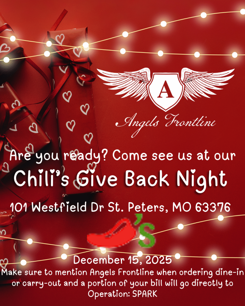 Mark your calendars and bring your appetite! Angels Frontline is teaming up with Chili’s for a Give Back Night on December 15, 2025! From 11 AM to 9 PM, the Mid Rivers Mall Chili’s (101 Westfield Drive, St. Peters, MO 63376) will be serving up great food and great community support.