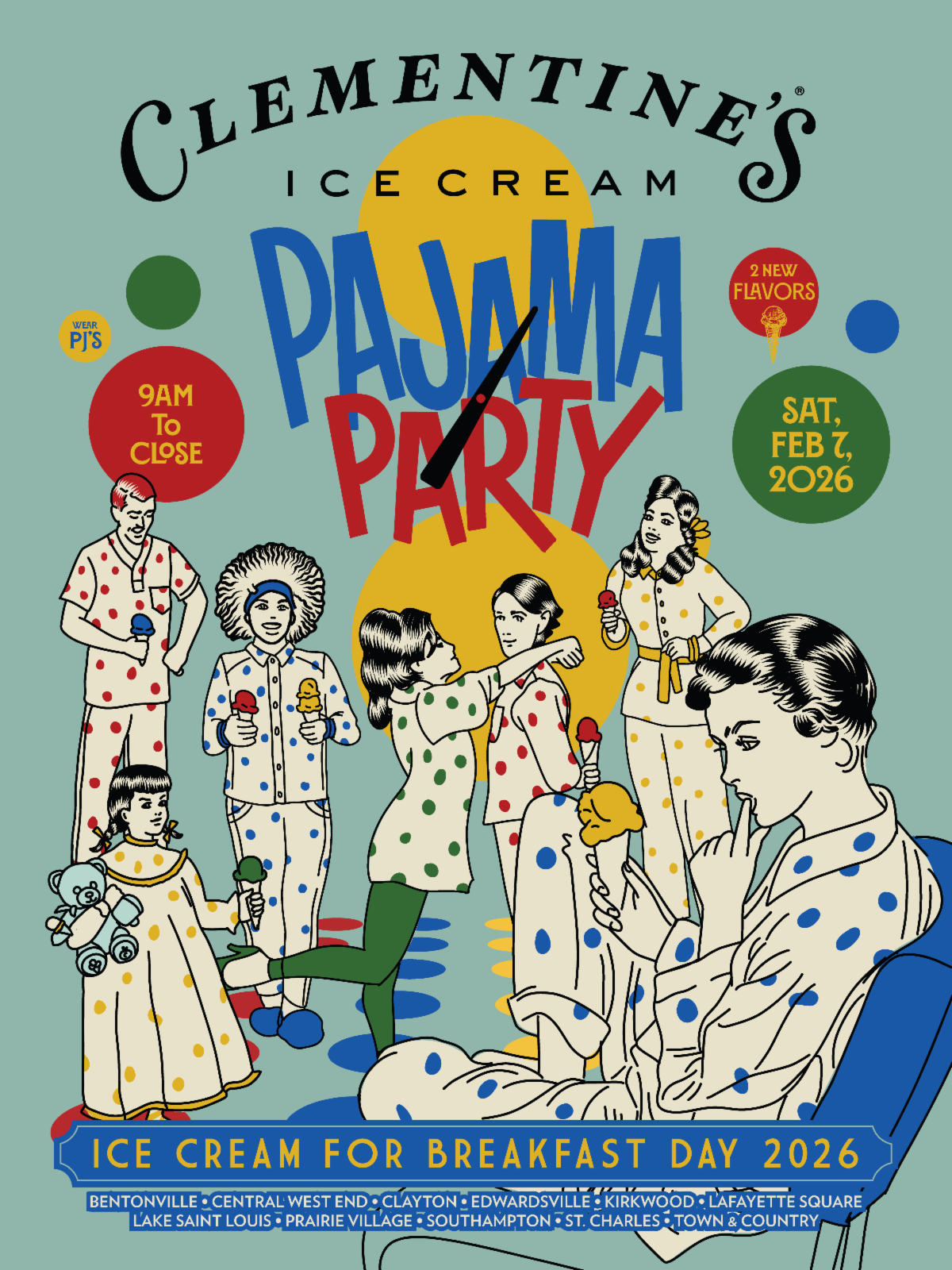 ST. LOUIS, MO / February 4, 2026 – Rise and Shine at Clementine’s! The annual Ice Cream for Breakfast Day celebration will be held from 9 a.m. to noon this Saturday, February 7. The first 50 households in line at each location will receive a free limited edition coffee mug (one mug per transaction), and the first person in line also receives a commemorative poster. Several new flavors created especially for the day will be available for purchase including Cereal Moo Juice and Venetian Tiramisu. Pajamas are encouraged as fun photo opportunities will last throughout the morning with giveaways at all locations, free balloons for the kids, and free pancake art by the iconic Dancakes at selection locations.