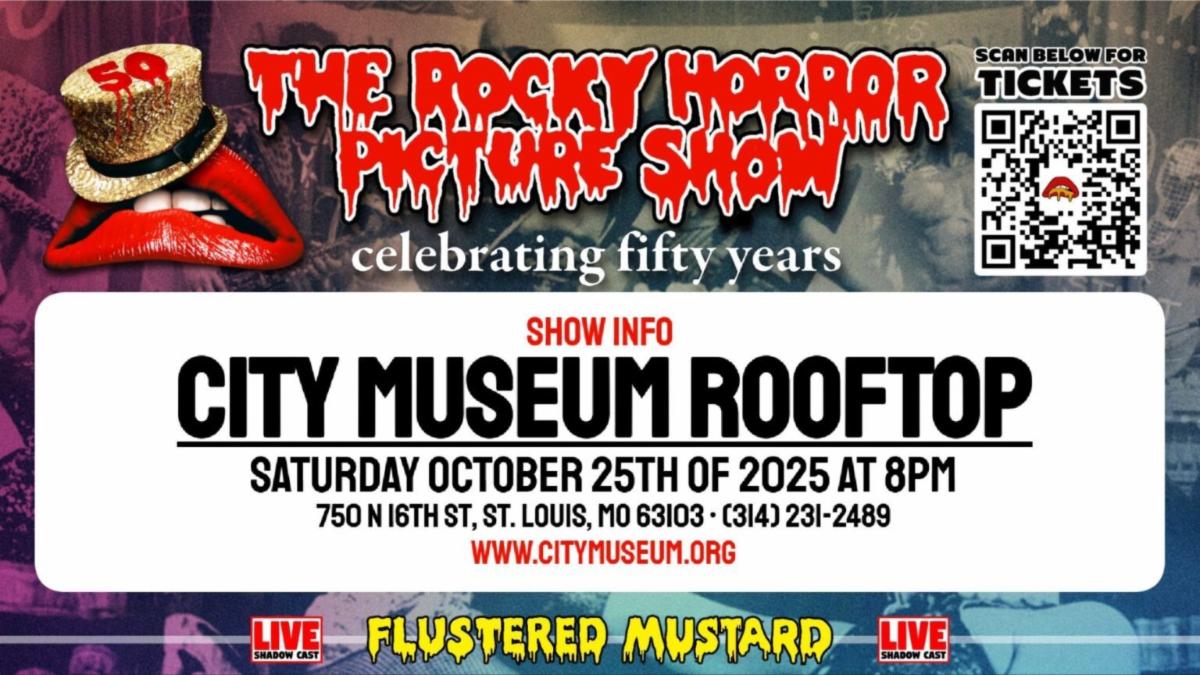 The 50th anniversary of The Rocky Horror Picture Show will be celebrated with a screening on the City Museum rooftop on October 25. Featuring a live shadowcast by Flustered Mustard, the ticket includes a prop bag to enhance the show. Dressing up is encouraged.