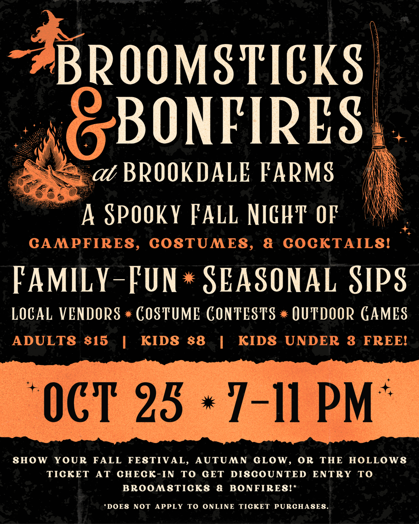 Show your 10/25 Fall Festival, Autumn Glow, or The Hollows ticket at check-in for discounted entry!