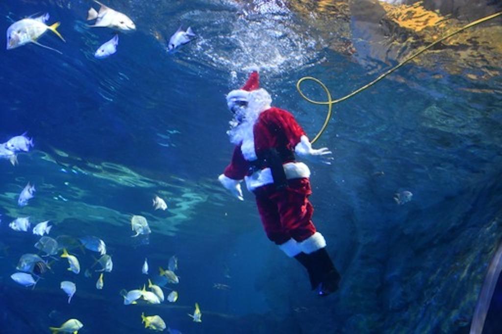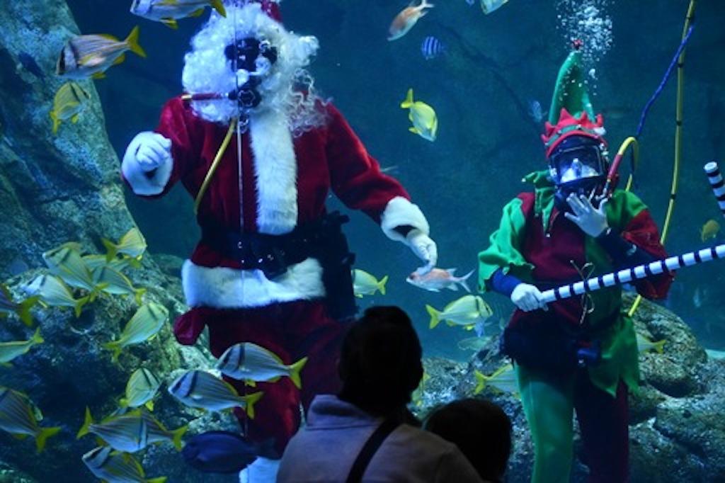 Kids can tell Scuba Claus and his elf about their Christmas wishes and families are welcome to take pictures with the diving Santa. A special dive mask lets the chatty elf communicate with visitors on the following dates at 1:15 p.m: